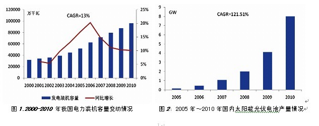 [align=center][size=2][font=楷体_GB2312][font=宋体]吴良义[/font][/font][/size][/align][align=center][size=1][font=华文中宋](天津市合成材料工业研究所,天津300220)[/font][/size][/align] [size=1][font=华文中宋] [/font][/size] [size=1][font=华文中宋]摘 要:介绍了环氧树脂基体先进复合材料在[color=black]能源工业[/color]的应用技术和市场现状,并对十二五期间的市场进行了规划目标介绍。[/font][/size] [size=1][font=华文中宋]关键词:碳纤维;先进复合材料;环氧树脂;能源工业[/font][/size][align=left][color=black][font=黑体] [/font][/color][/align] [color=black][font=黑体]0. 前言[/font][/color] [font=宋体]围绕兆瓦级叶片开发的新颖高性能玻璃纤维和高强低粘树脂,对整个玻璃钢传统市场是极大的变革,将使高性能船艇、航天航空零配件、汽车零配件,从传统的[/font][font=宋体]FRP[font=宋体]原材料中脱胎换骨,变得更轻、更强、功能更多,为玻璃钢新兴市场提供新的空间。[/font][/font] [font=新宋体]2010年我国发电装机容量9.62亿kw,2000年~201O年的增长情况见图1。2010年[/font][color=black][font=新宋体]国内太阳能光伏电池产量8GW,2005年~2010年国内太阳能光伏电池产量增长情况见图2。[/font][/color][font=新宋体]我国发电装机容量中,火电装机容量达70663万千瓦,继续向着大容量、高参数、环保型方向发展,年底全国在运百万千瓦超超临界火电机组达33台,还有11台在建。全年关停小火电机组超过1100万千瓦。[/font] [font=新宋体]非化石能源发电装机比重上升至26.53%。其中,水电开发步伐加快,装机容量突破2亿千瓦,达21340万千瓦。[/font][font=新宋体]占全国发电装机容量超过20%。[/font][font=新宋体]核电装机容量1082万千瓦,在建规模达26台2941万千瓦。全年新增风电并网容量1399万千瓦,总并网容量达3107万千瓦。[/font] [color=black][font=新宋体]到2015年,全国总装机容量将达到14.36亿千瓦,“十二五”其间年均增长8%。[/font][/color][font=新宋体],“十二五”时期,全国发电装机容量在结构上将发生变化,首先我国煤电比例将下降,从70%下降到64%,风电、水电及核电等清洁能源的比例将得到很大提高。,“十二五”时期,水电重点要开发金沙江、大渡河等水电基地,[/font][font=新宋体]将开工水电项目1.2亿千瓦,平均每年开工2400万千瓦,帮助我国实现2020年的节能减排目标,履行减排承诺。[/font][font=新宋体]核电将在沿海地区得到快速发展。风电在今后十年将建设7个千万级的发电,相当于建立7个三峡,主要分布在新疆、甘肃、内蒙以及江苏等地。[/font] [font=新宋体]智能电网发展对上游产业发电侧的促进,对风力发电最有利,其次是太阳能;电网侧方面,电力[/font] [color=black][font=新宋体] [/font][/color] [color=black][font=新宋体][/font][/color] [color=black][font=新宋体][/font][/color] [font=新宋体]电子设备制造发展空间最大,电路电容器、变压器、开关设备等反倒不是获利最大的上游行业;用户侧产业有电动汽车、太阳能制造等。[/font][font=宋体]2010[font=宋体]年,交通运输的玻璃纤维用量占到玻璃纤维总量的[/font]16[font=宋体]%,而汽车工业占这部分总量的[/font]80[font=宋体]%;电子/电力的玻璃纤维用量占到玻璃纤维总量的[/font]21[font=宋体]%,玻璃纤维布占全世界印刷线路板增强材料的[/font]55[font=宋体]%;另外建筑市场的玻璃纤维用量占到玻璃纤维总量的[/font]34[font=宋体]%。[/font][/font] [color=black][font=黑体] [/font][/color][color=black][font=黑体]1. [/font][/color][color=black][font=黑体]风力发电机叶片[1][/font][/color][color=black][font=黑体] [/font][/color] [font=宋体][color=black][font=楷体_GB2312]1.1 [/font][/color][color=black][font=楷体_GB2312]风力发电市场现状[/font][/color][color=black][font=楷体_GB2312][/font][/color][/font][color=black][font=新宋体]据了解由于对风力发电用叶片强度和刚度的[/font][/color] [font=新宋体] [/font][size=1][font=黑体]图3 玻璃纤维在各领域应用的分布[/font][/size][size=1][color=black][font=黑体] [/font][/color][/size] [color=black][font=新宋体]要求越来越高,30多米以上的玻璃钢叶片是由环氧树脂和碳纤维粘合制作,德国公司最大的风叶已达到82m。目前风能作为清洁能源受到重视,我国沿海和西北地区的风车田开发,将需求高性能风机叶片。四川东方气轮机厂已于2004年全套引进德国REPOWER公司风力发电机项目,这标志我国风田开发正式启动运行。该项目的风叶直径达35m,由丹麦在天津的独资企业制造配套,并进行国内原材料配套消化吸收。[/font][/color][font=宋体]2007[font=宋体]年以来,中国大飞机和风电复合材料开始快速发展,其使用的胶粘剂和复合材料基体树脂几乎全部靠进口,所以[/font]2010[font=宋体]年中国环氧树脂进口量合计达到[/font]30.96[font=宋体]万[/font]t[font=宋体]。比[/font]2009[font=宋体]年同期增长了[/font]34%[font=宋体],增长率的[/font]80%[font=宋体]与中国风电材料的高速发展遥相呼应。可以说风机叶片和大飞机复合材料机体环氧树脂约[/font]6[font=宋体]~[/font]8[font=宋体]万[/font]t[font=宋体]。[/font][/font] [font=宋体]2010年装机总容量达到42305MW。新增16500MW,按1.5兆瓦推算,全年叶片总量达32966片,树脂用量达10.6万吨,加上外资企业出口叶片树脂量可达14万多吨。[/font][font=新宋体]2001年~2010年风电增容及其配套材料的市场变化情况见表1。[/font][font=新宋体][/font][align=left][size=1][font=黑体] [/font][/size][/align][align=left][size=1][font=黑体]表1 2001年~2010年风电增容及其配套材